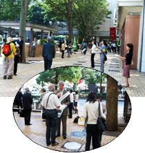 平和市民5団体で呼びかけた「核兵器禁止条約の締結を求める」署名活動に約50人が参加し、186筆の署名協力がありました。今回の署名は、国連に提出する署名で、平和市長会議が提唱する「2020年ビジョン」に基づき、2010年までに核兵器禁止条約の締結、2020年までに全ての核兵器の解体、核兵器の廃絶に向けた交渉義務を果たすことを求めています。時間は、12時から12時45分と短時間でしたが、参加者は、大きな声で署名への協力を呼びかけました。 |