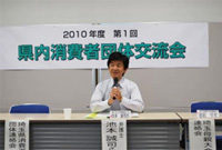 「地方消費者行政と消費者団体の活性化~消費者市民社会の形成に向けて~」のテーマで、講師に埼玉消費者被害をなくす会理事長の池本誠司弁護士を迎え学習しました。 ■各団体の活動交流 <さいたま市消団連> 「さいたま市消費者フォーラム」のシンポジウムに80人参加。消費生活展では更に交流し活動を広げていきたい。 <所沢市消団連> 主に消費生活展に向けて活動しています。 <蓮田市消団連> 3団体で活動。蓮田市やさしさいきいきフェスティバルでの消費生活展に参加。 <埼玉県西部地区消費者団体活動推進世話人会> 団体の相互連携、協働とともに、一般消費者への意識啓発を行う6地区12団体参加の会です。 <朝霞市くらしの会> 消費生活エコ学習会や、エコフリーマーケットなどを行っています。 <伊奈町くらしの会> 町の文化祭で廃油石鹸を無料配布しています。高崎ハムに視察研修予定。 <桶川市くらしの会> 桶川市の広報の「くらしのワンポイント」コーナーを担当していて、24年間、独自調査をしたものを見直す作業をしています。 <行田市くらしの会> 市や県から講師を招き講座開催。今年、行田ブランド米を作ることになり、代表者が研修に出かけています。 <久喜市くらしの会> 市町の合併により、新しい久喜市くらしの会ができました。学習の機会を増やし、会員以外も行事などに巻き込んでいきたい。 <くまがやくらしの会> この交流会をきっかけに、今年度、桶川市くらしの会さんとの交会の企画をしました。 <志木市くらしの会> 発足から30年経ちました。子ども消費者教室を開催し飲料糖度の実験をしました。 <白岡町くらしの会> この交流会を機に、自治体と話し合いもでき、会の運営もしやすくなりました。 <NPO法人埼玉消費者被害をなくす会> 適格消費者団体として、活動委員会の調査活動を基に、不当な事業者に対し申入れ、差し止め請求、訴訟などを行っています。