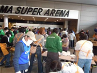 - さいたまスーパーアリーナの避難者に対し、県社協・JC(青年会議所)と一緒に10:00~12:00にかけて、炊き出しを行いました。