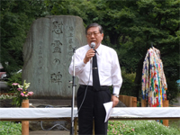埼玉県生協連の伊藤会長理事は「しらさぎ会と協力団体では、この10年、慰霊式のあり方について話し合ってきました。この慰霊式をより多くの県民が参加して「原爆被害者を追悼するとともに、核兵器廃絶を願う埼玉県民の運動の原点」として発展させたいとの、しらさぎ会の申し出をうけ、2003年から4団体の協力が始まりました。今年、さらに踏み込んで役割を分担し、協力することになりました。私たち平和市民5団体は、2004年から思想・信条の違いを超えて「核兵器廃絶」の一点で、協同し、核兵器のない世界をめざす運動を行ってきました。引き続き、最大限の取り組みをすすめます。」とあいさつされました。