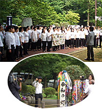 今回の慰霊式には、韓国から「平和の木合唱団」の皆様が参加し、埼玉合唱団とともに、最初に北東アジアの平和を願っての慰霊の合唱がありました。