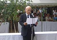 主催者のしらさぎ会田中熙巳会長より「まもなく、67年目の夏がやってきます。8月を迎えると、否応なしにあの地獄のような惨状を思い起します。昨年、東日本を襲った大震災は多くの住民の命を奪っただけでなく、東京電力福島第一原子力発電所の事故は大量の放射能を放出し、新たなヒバクシャを生み出しました。核兵器と原子力発電は人類と共存しえない。地球上にはまだ2万発以上の核兵器が存在しています。原爆犠牲者への国の償いが果たされ、核兵器が地球上から一発残らず無くなったとき死者の御魂は本当に安らぐことができる。私たちは、慰霊式を支えてくださる団体、個人としっかりと手を携えて、核兵器のない世界、核の脅威のないない世界実現に向けて、力を尽くします。」と慰霊の言葉がありました。