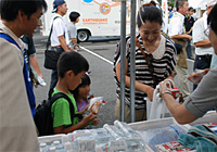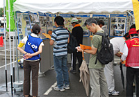 生協の災害活動の支援をテーマに、日本生協連の災害と食、東日本大震災への支援の取り組み等のタペストリーの展示を行いました。合わせて、非常持ち出し品チェックリストを100枚配布しました。また、タペストリーからのクイズを行い、日頃の備蓄品などの点検をして頂き、全問答えていただいた方に防災グッズやボールペンなどプレゼントしました。