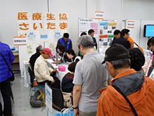 会員生協では、さいたまコープ(ワインの試飲や団地ステーションの展示)、パルシステム埼玉(ウンナーの試食など)、生活クラブ生協(牛乳の試飲など)、医療生協さいたま(骨密度測定など:日本医療福祉生協連のブース出展)がブースを設け、親子ふれあい広場や介助犬のデモンストレーションなども行われました。