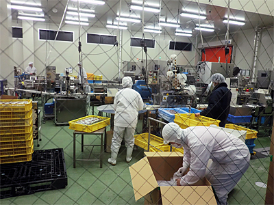 | ▲「新しい提案」を実現するために新工場が稼働。 メカブのパッケージライン(丸ほ保原商店) |