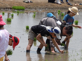 埼玉県産米交流会「埼玉のお米を食べてみよう 体験田植え」が、34家族113人の参加で開催されました。