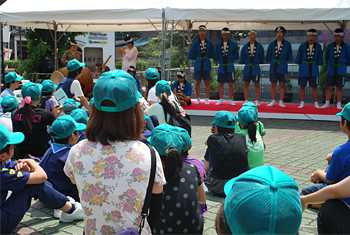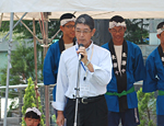 長瀞町教育委員会の宮原利定教育長は、「これから長瀞中学校生徒の歓迎のお囃子をおこないます。ここには、大きな川があり、ライン下りはスリルがあって楽しいと思います。三日間、たくさんの人たちと知り合って、夏休みの思い出を持ち帰ってください」と挨拶しました。