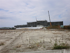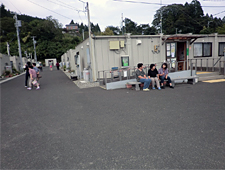 | 山元町の仮設住宅。ベンチは住民のコミュニケーションの場だ。 | 周辺に何もない場所に建設が進む災害公営住宅(仙台市田子西地区)。しかし宮城県の計画戸数15,754戸に対し工事が完了したのはまだ117戸にすぎない(’13年8月31日現在)。 |