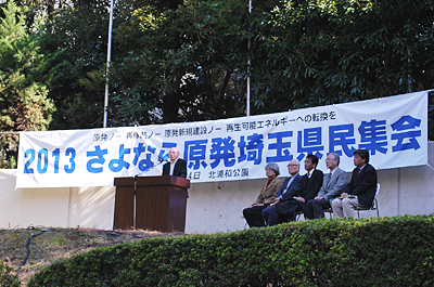 11月24日、「2013さよなら原発埼玉県民集会」がさいたま市浦和区の北浦和公園で開催されました。 “原発はいらない”の思いを込めて、22団体と6人の個人で構成する、2013さよなら原発埼玉県民集会実行委員会の主催で、3,500人が参加しました。