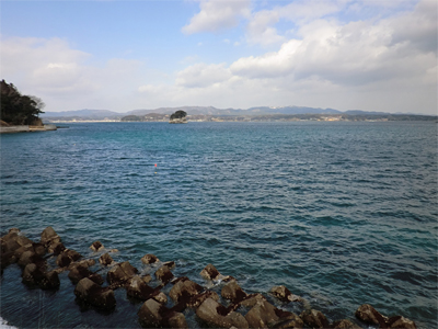 | ▲中央の島の向こうに銀ザケ養殖場がある。 |