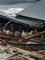 写真(右)約4万1000羽が下敷きとなった生活クラブたまご坂戸農場
