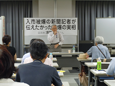 5日、入市被爆者の浅野温生さん(中国新聞記者)から、ご自身の体験と新聞記者として多くの被爆者の苦悩を取材されたお話を聴く催しが午前10時から中区の市民交流プラザで開催されました。