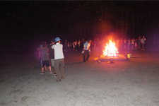 2日目の夜は、ファイアー場でキャンプファイヤー。火の神様からの火が点火され、勢いよく燃え上がる焚火をみんなで囲み、ボーイスカウト埼玉県連盟の皆さんの指導で約一時間、歌いながら楽しく過ごしました。