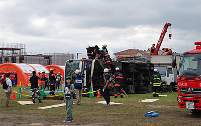 首都圏9都県市合同防災訓練に位置づけられた埼玉県と草加市による総合防災訓練が8月31日、草加市の綾瀬川左岸広場を中央会場におこなわれました。消防、警察、自衛隊、医療機関など156団体と市民約4500人が参加した今回の防災訓練に、5生協の役職員、組合員と県生協連あわせて21人が参加しました。