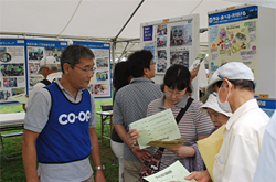 | 生協の災害支援活動を広報(防災フェア) | 応急生活物資配布訓練(コープみらい) |