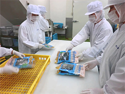 ▲(写真下)志田金の塩蔵わかめ生産工程