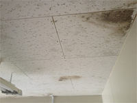 | 真っ黒なカビがはびこるキッチンの天井部。提供:NPO法人石巻復興支援ネットワーク(やっぺす) |
