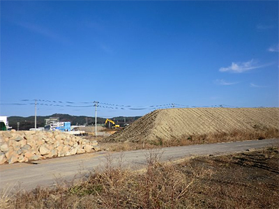 ▲(写真上)広大な土地の嵩上げ光景を見ると、震災で失われたものの大きさが分かる。水産加工施設の集積が計画されている南気仙沼地区。