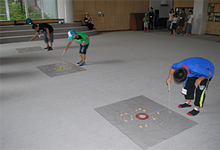 休憩後は、1~100の数字並べの神経衰弱、4連射できる銃を使い、初級・中級・上級の的宛てゲームを行い、終了後にはコマのプレゼントがありました。