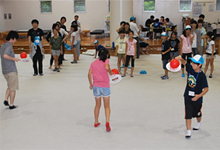 午前に予定していた川遊びは雨のため中止になり、プレイルームにて、昨日の思い出作り、うちわを使ったゴルフボールと風船運びのゲームを行いました。