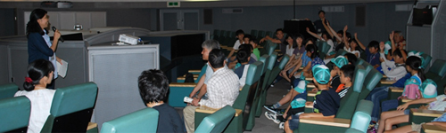 16時からは、歓迎行事をプラネタリウム室でおこないました。埼玉県生協連の会員生協から寄せられたメッセージをスライドにして上映し、参加いただいた生協の組合員・職員からあいさつをいただきました。
