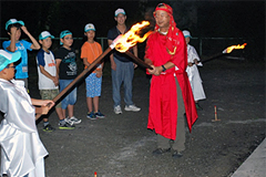 鉄道博物館を思いっきり楽しんだ後、小川げんきプラザに戻り、19時からはキャンプファイヤーを行いました。