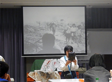 中学2年生で原爆投下翌日に市内中心部に入り入市被爆、その際の惨状を目撃した話、建物疎開の動員の一日違いで私たちの身代わりとなった一年生322人を憶う時の命を永らえていることへのうしろめたさ、証言をするキッカケ、オバマ大統領来訪による核廃絶の世界的な動きへの期待などが語られました。