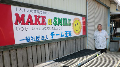 チーム王冠のボランティアセンターと代表理事の伊藤健哉さん。