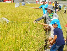 親子で生きもの調査と稲刈りを楽しみました