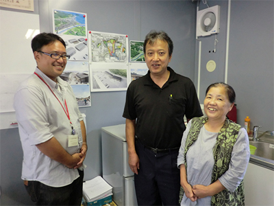 仮設のさんさん商店街にある(株)南三陸まちづくり未来の事務所で、