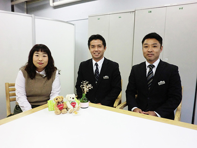 石巻市にある東部教育事務所。5人の専門職員がチームを組んで学校を支援しています。左から三上由紀子さん(臨床心理士)、浅野芳博さん(指導主事)、佐藤慎也さん(指導主事)。