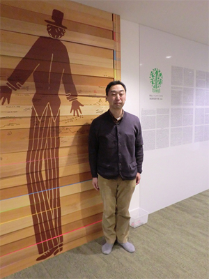 あしながおじさんが描かれた壁には石巻レインボーハウス建設に寄附金を寄せた人々の名が掲げられている。