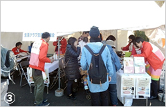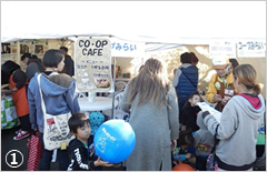 生協からは、生協の活動紹介と合わせ、コープみらいは、ココアのお菓子付販売・パンチ風船等(写真①)、パルシステム埼玉はヨーグルトの試食等(写真②)、生活クラブは、牛乳の試飲・添加物クイズ等(写真③) 、医療生協さいたまは、握力・脳トレ・体力チェック等(写真④)、さいたま高齢協:アンケート・オーナメント造り、埼玉県生協連:さいたまの生協の紹介、消費者被害防止188クイズと啓発グッズ布(写真⑤)をおこないました。