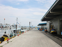 漁港には、製氷工場や荷捌き場などの機能が揃った亘理荒浜魚市場が控えています。 |