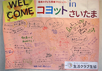 福島駅及び郡山駅から、11人の子どもたちは迎えのスタッフ3人とともに、埼玉県に向けて出発し、順調に宿泊先である吉見町のフレンドシップハイツよしみに到着しました。その後昼食をとり、13時30分から、各生協からの歓迎行事を開催しました。会員生協(コープみらい・生活クラブ生協・医療生協さいたま)からの歓迎のことばや、組合員のみなさんからのメッセージなどの紹介をおこないました。