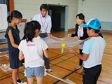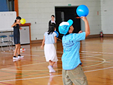 16時からはボーイスカウト埼玉県連盟による遊びの時間で、風船やボール・空き缶を使って体を動かしながら、おとなと子ども混合で4チームに分かれ、力を合わせて競いあいました。夕食後は、体育館で100ならべ、ボーイスカウトかるたなどを楽しみました。