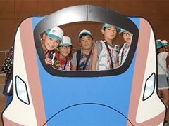 最終日は、台風通過の関係で、むさしの村での野菜収穫体験を鉄道博物館見学に変更。フレンドシップハイツよしみから、さいたま市の鉄道博物館に向かいました。