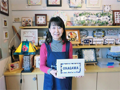 女川スペインタイルは、震災後に誕生した女川独自の工芸品です。きっかけは、町の復興を考える人たちの中から出た「スペインタイルを女川の新しいお土産にしよう」というアイディアでした。協力を求められたのが、震災前、女川で陶芸教室をやっていた阿部鳴美さんです。阿部さんは東京の教室へ通ってタイルづくりを学びました。スペインにも足を運び、何十年経っても色あせないタイルに魅了されました。