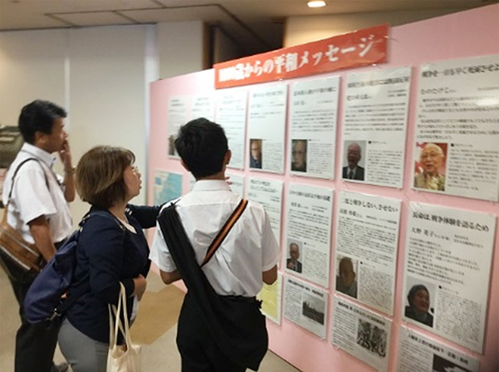 また、会場の中央には「みんなで書こう平和のメッセージ」と題したコーナーが設けられ、その場でメッセージを記入する方が多くいました。記入されたメッセージは会場内に貼り出されました。