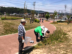 | ▲山元復興ステーションの橋本大樹さん。2012年、神戸まちづくり研究所から派遣されて山元町へ移住しました。 | ▲公園利用者の有志で公園管理会を組織し、清掃や樹木施肥などの活動を行なっています。(写真提供:山元復興ステーション) |