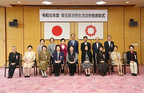10月15日(火)、埼玉県消費生活功労者表彰式が埼玉県知事公館で行われ、消費者団体や消費生活協同組合の活動を通して消費者の利益のために取り組んでこられた16人の方が表彰されました。