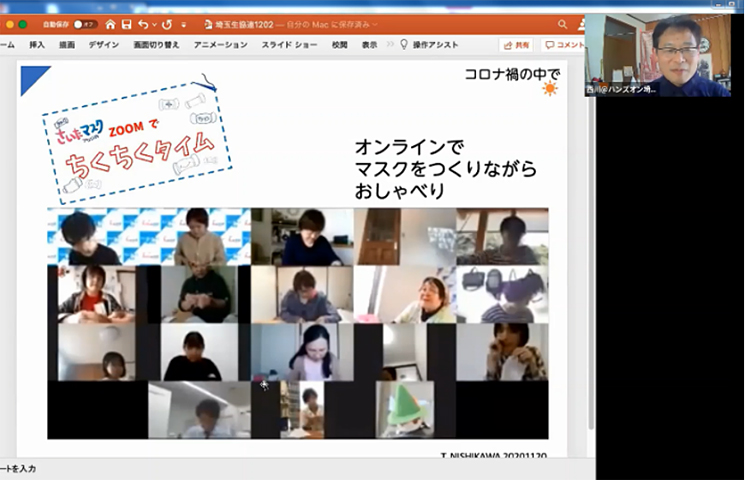 西川さんによる活動紹介(オンラインでマスクづくり)