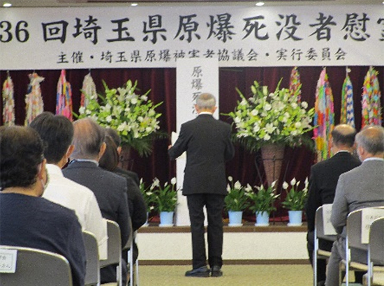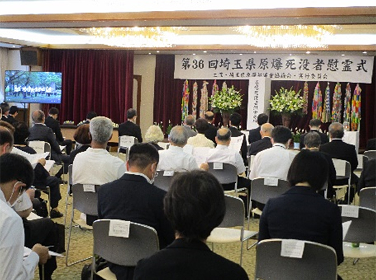 7月25日、さいたま共済会館(さいたま市浦和区)で、第36回埼玉県原爆死没者慰霊式が開催され、被爆者やご遺族、来賓、実行委員会団体代表者など83人が参加しました。