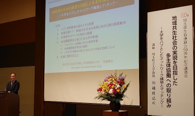 会員生協および埼玉県生協連も参加している地域包括ケア推進セミナー・ネットワーク会 議を主催されている、埼玉県立大学大学院保健医療福祉学研究科 研究開発センター教授 川越雅弘さんに、「地域共生社会の実現を目指した多主体協働への取り組み ~大学をハブとしたネットワーク構築とマッチング~」と題してご講演いただきました。