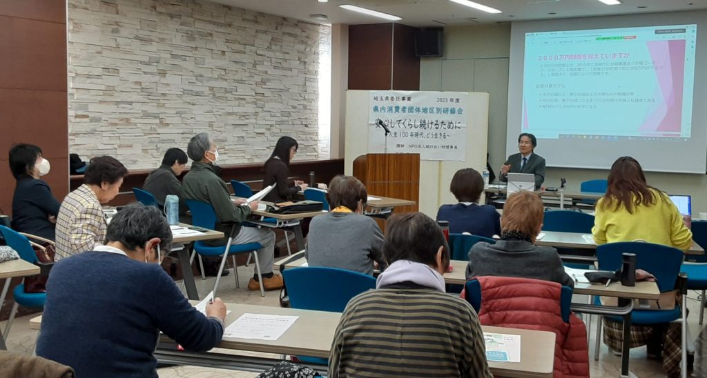 2023年11月13日(月)10時30分より、県内消費者団体地区別研修会①を、上尾東武ホテルコミュニティホールで開催し、会場14人・オンライン12人計26人が参加しました。