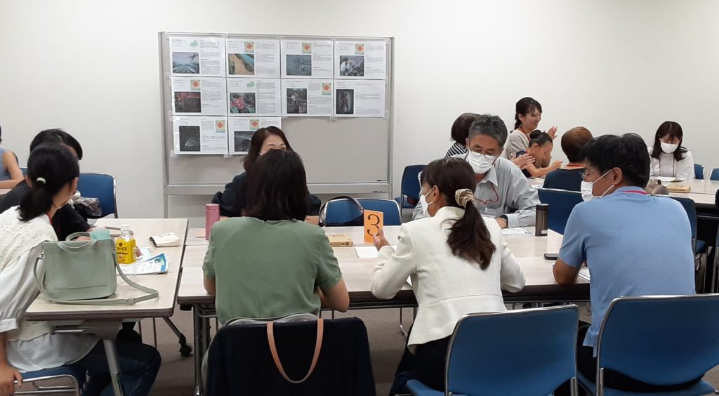 各生協の報告の後、休憩をはさんで5つのグループに分かれてワークショップを行いました。自己紹介をかねたアイスブレイクから始まり「参加して現地で感じたこと、気づいたこと、学んだこと」を出し合いました。次に「感じたこと、気づいたこと、学んだことを忘れず、日々のくらしや活動の中で何ができるのか」をグループで話し合いました。