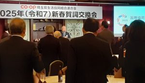 1月23日、埼玉県生協連への日頃のご厚情に感謝を伝え、生協への共感を広げるとともに、ネットワークをさらに深めることを目的に、2025年新春賀詞交換会を、ロイヤルパインズホテル浦和ゴールドルームで開催しました。大野元裕埼玉県知事、埼玉県議会議長代理関根信明総務県民生活委員長、田中煕巳日本被団協代表委員・埼玉県原爆被害者協議会(しらさぎ会)名誉会長をはじめ、埼玉県の各界を代表する皆様と会員生協役職員61人が出席されました。