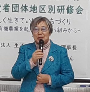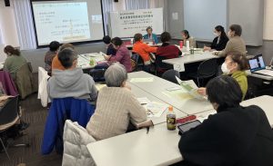 1月20日、東上パールビルヂング(川越市)会議室にて、11団体36人(会場26人、オンライン10人)の参加で、県内消費者団体地区別研修会③「自分らしく生きていけるまちづくり ~小川町での有機農業を起点とした取り組みから~」を開催しました。
