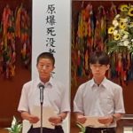 来賓のあいさつ、メッセージ紹介に続き、平和の誓いを県立浦和高校の大澤雄吾さんと石川翔一さん、秩父ユネスコ協会の高野真紀さんより行いました。
