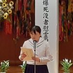 次に、被爆の証言では、しらさぎ会の加藤高明さんの証言を斉藤とも子さんが朗読しました。その後、献花、折り鶴奉納と進み、最後に平和の願い、核兵器廃絶の思いを込めて「原爆を許すまじ」を斉唱し、終了しました。